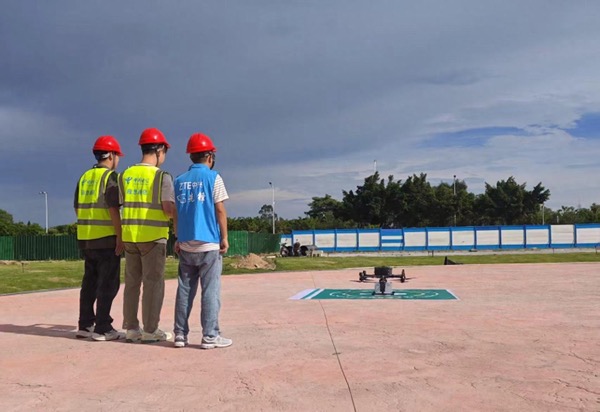 中國電信北海分公司和中興公司的技術(shù)專家們正在調(diào)試無人機(jī),控制無人機(jī)安全降落