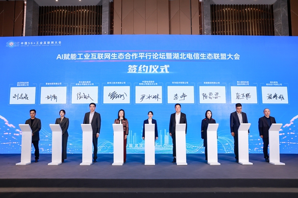 近日,在2025中國(guó)5G+工業(yè)互聯(lián)網(wǎng)大會(huì)期間,中國(guó)電信湖北公司承辦的“AI賦能工業(yè)互聯(lián)網(wǎng)生態(tài)合作平行論壇暨湖北電信生態(tài)聯(lián)盟大會(huì)”在武漢成功舉辦。來(lái)自湖北省經(jīng)信廳,華為、中興、烽火、新華三、東風(fēng)等百余家政府機(jī)構(gòu)、龍頭企業(yè)及生態(tài)合作伙伴齊聚一堂,圍繞AI賦能工業(yè)互聯(lián)網(wǎng)、可信數(shù)據(jù)空間、AI安全、算力發(fā)展趨勢(shì)等內(nèi)容展開(kāi)深入交流。中國(guó)電信湖北公司與8家單位簽訂AI生態(tài)聯(lián)盟合作協(xié)議。