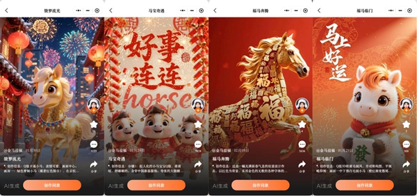 據(jù)介紹,本次春節(jié)企劃同步聯(lián)動(dòng)創(chuàng)意社區(qū)內(nèi)容生態(tài),用戶可瀏覽其他創(chuàng)作者作品并一鍵“做同款”,通過改寫提示詞快速生成自己的版本,形成“模板化效率”與“個(gè)性化表達(dá)”的結(jié)合,推動(dòng)節(jié)日內(nèi)容從單向傳播走向可持續(xù)的共創(chuàng)分享。