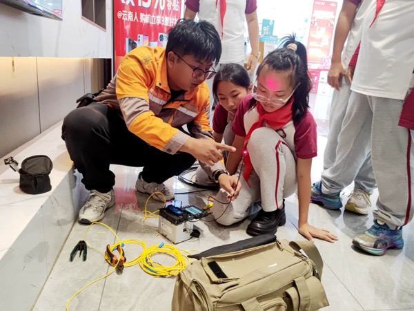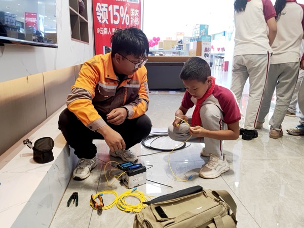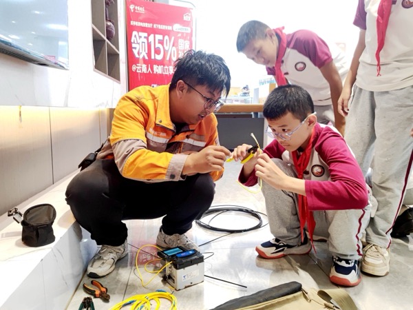 近日,云南省普洱市思茅三小學(xué)生走進(jìn)中國(guó)電信普洱分公司世紀(jì)廣場(chǎng)營(yíng)業(yè)廳,開(kāi)展通信科技實(shí)踐活動(dòng)。在智慧家庭工程師指導(dǎo)下,學(xué)生們通過(guò)理論講解、設(shè)備演示及動(dòng)手實(shí)操,深入了解了現(xiàn)代通信技術(shù)。活動(dòng)中,工作人員以"手機(jī)心臟"比喻芯片功能,借助光貓、路由器等設(shè)備直觀演示家庭網(wǎng)絡(luò)"信號(hào)接力"原理。智慧家庭工程師現(xiàn)場(chǎng)操作光纖熔接機(jī),以高壓電弧精準(zhǔn)熔合發(fā)絲細(xì)的光纖,搭建起"信號(hào)傳輸橋梁",并對(duì)比講解FTTR技術(shù)突破——該技術(shù)通過(guò)光纖到房間實(shí)現(xiàn)全屋千兆覆蓋,有效解決傳統(tǒng)WiFi穿墻信號(hào)衰減問(wèn)題。實(shí)操環(huán)節(jié)學(xué)生分組體驗(yàn)光纖整理、設(shè)備連接等項(xiàng)目,嘗試光貓路由器組網(wǎng)及光纖護(hù)套剝離,現(xiàn)場(chǎng)測(cè)試全屋無(wú)死角信號(hào)覆蓋效果?;顒?dòng)通過(guò)"理論+實(shí)踐"模式,幫助學(xué)生從科技使用者轉(zhuǎn)變?yōu)榭萍继剿髡?,激發(fā)對(duì)通信技術(shù)的興趣。