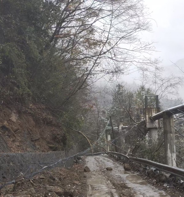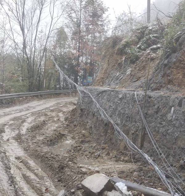 11月17日凌晨,重慶市城口縣迎來強降溫降雪天氣,部分地區(qū)積雪嚴重。受此次雪情影響,雙河鄉(xiāng)余坪村積雪過厚導(dǎo)致樹木倒塌,壓垮供電線路,造成該片區(qū)大面積停電,位于九重花嶺的電信OLT室外柜設(shè)備因斷電脫離網(wǎng)絡(luò),致使當?shù)匕耸鄳艏彝拵I(yè)務(wù)中斷。此外,龍?zhí)镟l(xiāng)五里村電桿損壞5根,中繼光纜中斷2條,導(dǎo)致4個一級分光、5個基站無法使用。
