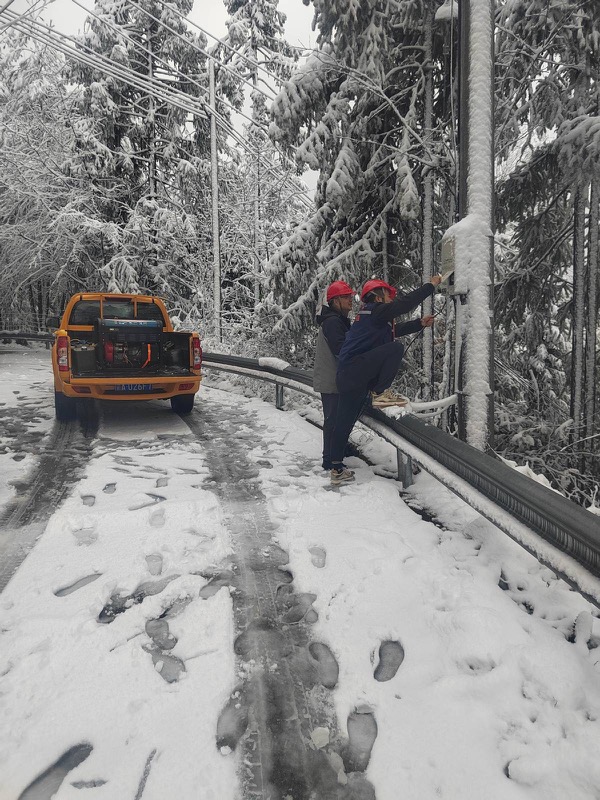 險情就是命令。中國電信城口分公司在接到消息后,第一時間啟動應(yīng)急通信保障預(yù)案,迅速組織搶修隊伍,攜帶發(fā)電機等應(yīng)急物資,火速趕往故障現(xiàn)場。由于持續(xù)降雪,通往受災(zāi)點的道路已被厚厚的積雪覆蓋,車輛行駛異常艱難,搶修工作面臨嚴峻挑戰(zhàn)。