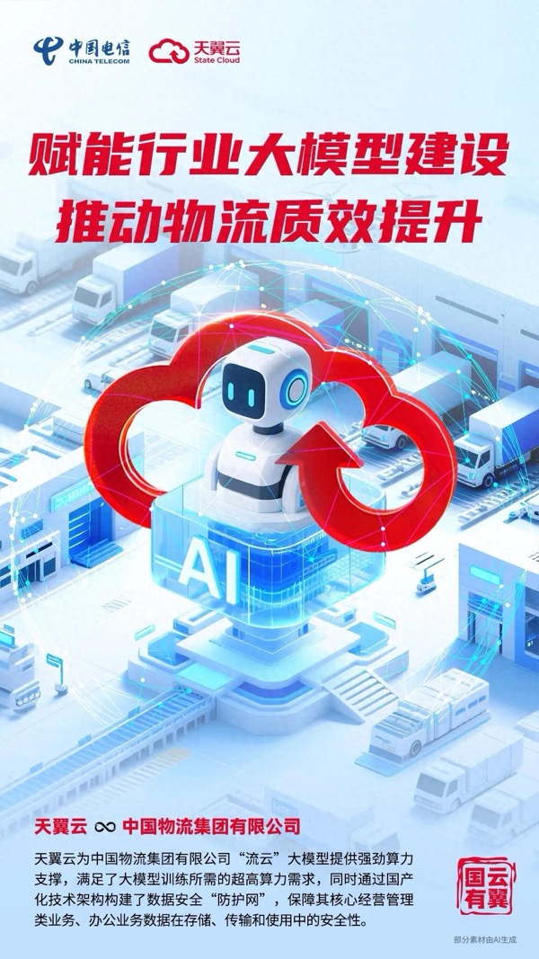 中國物流集團有限公司(以下簡稱“中國物流”)是國務(wù)院國資委直接監(jiān)管的股權(quán)多元化國有全資中央企業(yè),致力于打造“成為具有全球競爭力的世界一流綜合性現(xiàn)代物流企業(yè)集團”。作為物流行業(yè)的“國家隊”,中國物流積極把握人工智能發(fā)展方向,與中國電信等合作伙伴共同研發(fā)、上線2780億參數(shù)“流云”大模型,有力推動了物流行業(yè)數(shù)智化升級與“人工智能+”生態(tài)發(fā)展,為降低全社會物流成本提供了強有力的技術(shù)支撐。天翼云作為云服務(wù)國家隊,為“流云”大模型提供了強勁算力支撐,不僅助力中國物流成功實現(xiàn)數(shù)字化轉(zhuǎn)型,也為整個物流行業(yè)智能化發(fā)展樹立了央企新標(biāo)桿。
