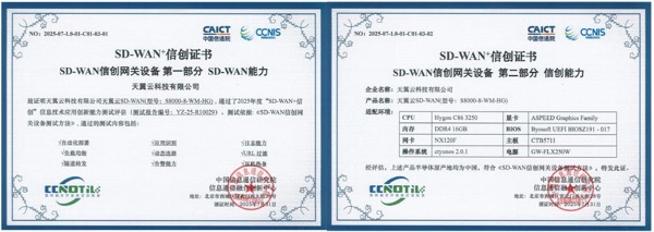 近日,天翼云科技有限公司“天翼云SD-WAN”順利通過中國信息通信研究院(以下簡稱“中國信通院”)“SD-WAN?信創(chuàng)”項目評估,在“SD-WAN+信創(chuàng)基準(zhǔn)解決方案”“SD-WAN信創(chuàng)控制器”及“SD-WAN信創(chuàng)網(wǎng)關(guān)設(shè)備”三大核心模塊的評估中表現(xiàn)優(yōu)異,成為國內(nèi)首批通過該系列認(rèn)證的云服務(wù)商。這標(biāo)志著天翼云在SD-WAN信創(chuàng)領(lǐng)域的技術(shù)成熟度、安全可靠性及專業(yè)能力獲得了行業(yè)權(quán)威認(rèn)可,為構(gòu)建自主可控、安全可靠的數(shù)字基礎(chǔ)設(shè)施提供了堅實支撐。