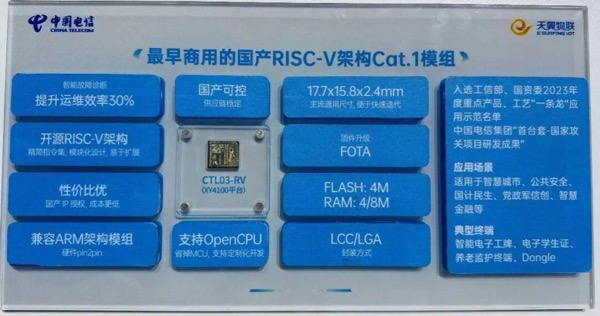值得關(guān)注的是,2023年,天翼物聯(lián)憑借RISC-V模組成功入選工信部、國(guó)務(wù)院國(guó)資委“重點(diǎn)產(chǎn)品、工藝‘一條龍’應(yīng)用示范項(xiàng)目”,成為推動(dòng)RISC-V產(chǎn)業(yè)規(guī)模化應(yīng)用的關(guān)鍵力量。