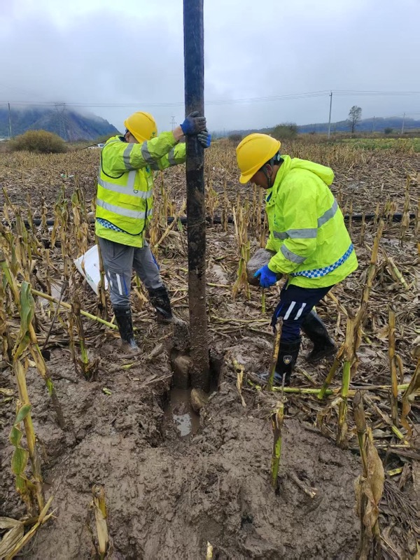 10月25日清晨,中國(guó)電信寶雞太白分公司綜維CEO、共產(chǎn)黨員杜華接報(bào)后第一時(shí)間帶領(lǐng)團(tuán)隊(duì)奔赴現(xiàn)場(chǎng),在泥濘的田間展開(kāi)緊急搶險(xiǎn)作業(yè)。抵達(dá)現(xiàn)場(chǎng)時(shí),倒伏的桿路被濕滑的玉米地覆蓋,秸稈裹著黏重的濕泥堆積田間,多處水洼漫過(guò)腳面,線纜半掩在殘葉與泥濘之間。因田間道路泥濘不堪,搶修車輛無(wú)法深入,杜華團(tuán)隊(duì)身著反光安全背心、腳踩雨靴,肩扛工具、徒步跋涉數(shù)百米進(jìn)入作業(yè)區(qū)域?,F(xiàn)場(chǎng)濕軟的泥土每一步都陷至腳踝,秸稈與雜物纏繞線纜,加固桿基需先清理積泥與殘枝。搶修隊(duì)員冒著陰雨,徒手撥開(kāi)腐爛秸稈、刨開(kāi)濕泥固定桿體,同時(shí)對(duì)受損線纜進(jìn)行檢測(cè)、接續(xù)。期間,隊(duì)員們多次在泥濘中滑倒,卻顧不上清理泥水,持續(xù)爭(zhēng)分奪秒推進(jìn)作業(yè)。
