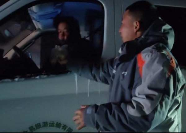 “大家再堅(jiān)持一下,保暖物資馬上送到!通信一直通著,救援力量都在往這邊趕,放心!”遇到焦急張望的游客,隊(duì)員們第一時(shí)間上前安撫情緒。在擁堵最嚴(yán)重的路段,他們協(xié)助交管部門搭建臨時(shí)補(bǔ)給點(diǎn),將保暖物資和生活物資逐一分發(fā)到位,尤其對老人、婦女、兒童等特殊群體給予重點(diǎn)關(guān)照。分發(fā)物資間隙,隊(duì)員們還主動(dòng)協(xié)助拖車力量推送打滑車輛脫困,并耐心向游客講解路況信息和通行注意事項(xiàng)。從深夜到清晨,隊(duì)員們持續(xù)奮戰(zhàn)近10小時(shí),始終堅(jiān)守在救援一線,用實(shí)際行動(dòng)傳遞著國企的責(zé)任與溫度。