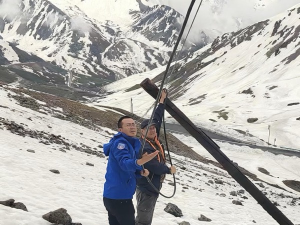 在米鴻八年的堅(jiān)守里,2021年3月的那個(gè)帕米爾雪夜,是他最難忘的一次“硬仗”。當(dāng)時(shí),海拔4800米的熱斯喀木村因山體塌方,光纜被壓斷,村民與外界的通信徹底中斷——村里有老人要聯(lián)系外地就醫(yī)的子女,邊防部隊(duì)也需要穩(wěn)定通信保障,情況緊急。
