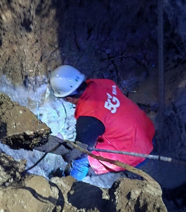 在泥水中,他們展開了一場精密而緊張的作業(yè):定位、剝纖、熔接、測試……每一個動作都精準利落,每一次屏息都凝聚著專業(yè)的重量。泥漿浸透了工裝,寒意侵襲著身體,但他們手中守護的,是比光纖更堅韌的責任,是比信號傳遞更遠的擔當。